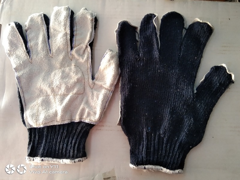 Cotton Knitted gloves- grey-80gms WITH LEATHER PALM